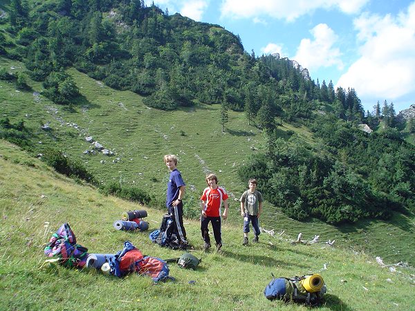 Nach dem Aufstieg findet sich ein guter Platz für die Zelte.